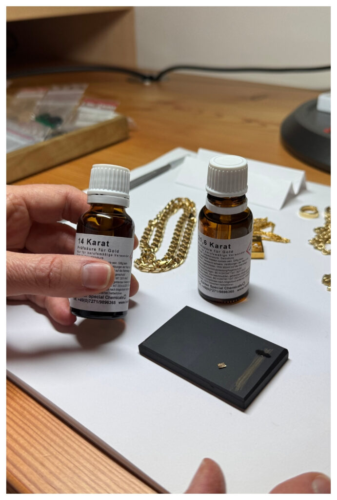 - Säureprüfungen für Edelmetalle wie Gold, Silber und Platin